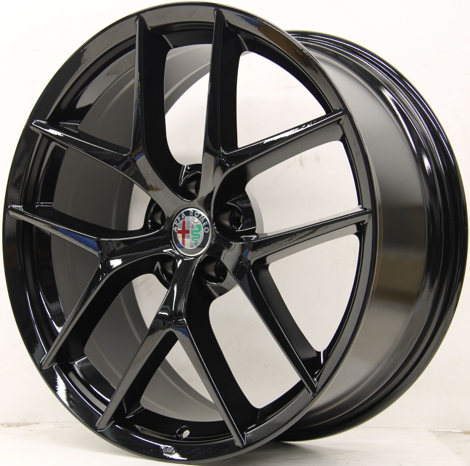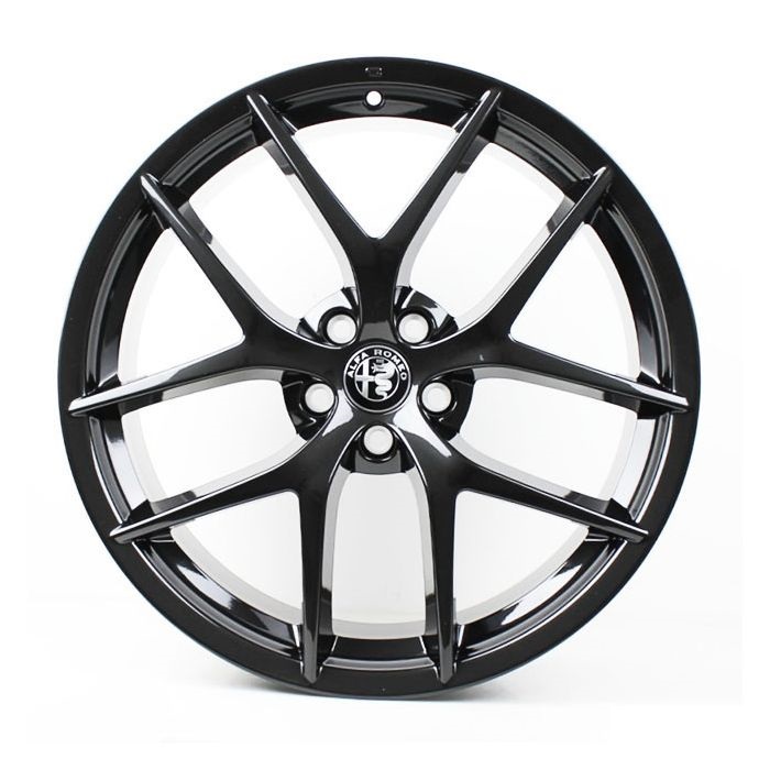 Cerchio in lega con design a 5 razze ad Y, disponibile con finitura Black Gloss. Misura 8,5j x 20, specifico per Alfa Romeo Stelvio (No QV).